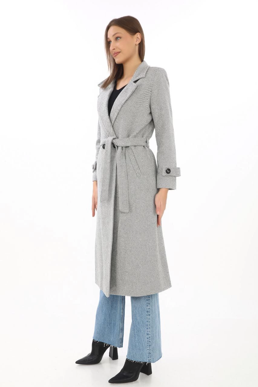 Velmora Balık Sırtı Kaşe Kaban – Uzun Boy Kruvaze Yaka Kuşaklı Astarlı Kışlık Tesettür Kaban, Yünlü Dokuma Kaşmir Kumaş, Cepli Rahat Oversize Kalıp Şık Modern Kaban Mont Modeli (Günlük ve Özel Gün Kombinlerine Uygun) - Gri