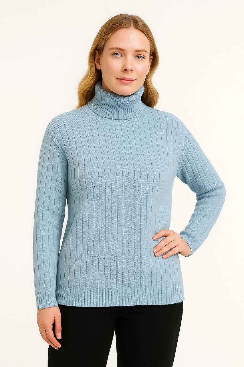 Velmora Balıkcı Yaka Bağazlı Triko Kazak Pamuklu Kalın Fitilli Dokuma - Bebek Mavisi