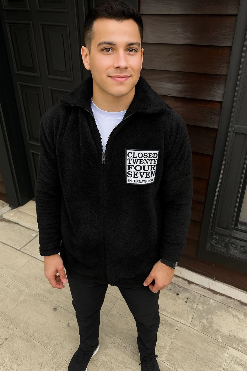 Pelüş Tam Fermuarlı Hırka