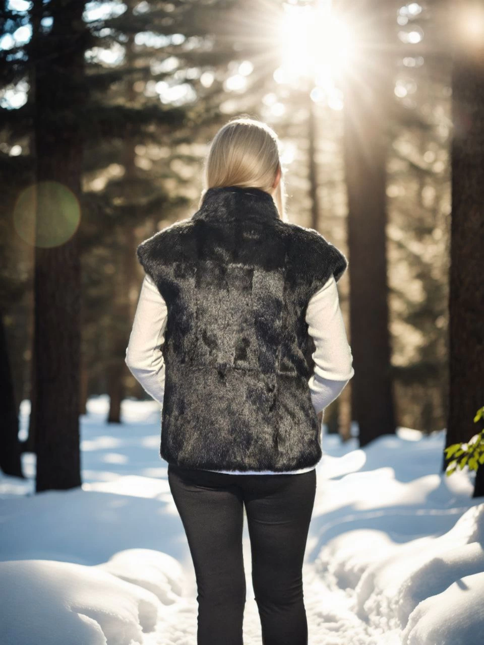 Velmora Premium Kolsuz Hakiki Kürk - Siyah