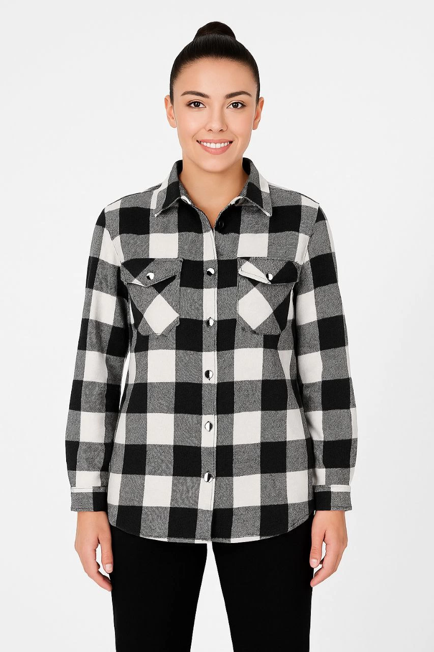 Velmora Premium Oduncu Gömlek – Uzun Kollu, Şardonlu Kumaş, Kırmızı Beyaz Kareli Desen, Regular Fit, Çift Cepli, Manşetli Günlük Şık Stil - Siyah