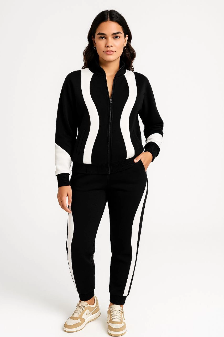 Velmora Premium Parçalı Eşofman Takım - Dik Yaka Fermuarlı Sweatshirt - Siyah -