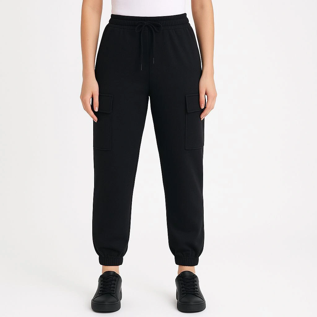 Kadın Jogger Eşofman Altı Rahat Kalıp, Cepli, Lastikli Paça, Günlük Spor Pantolon - Siyah