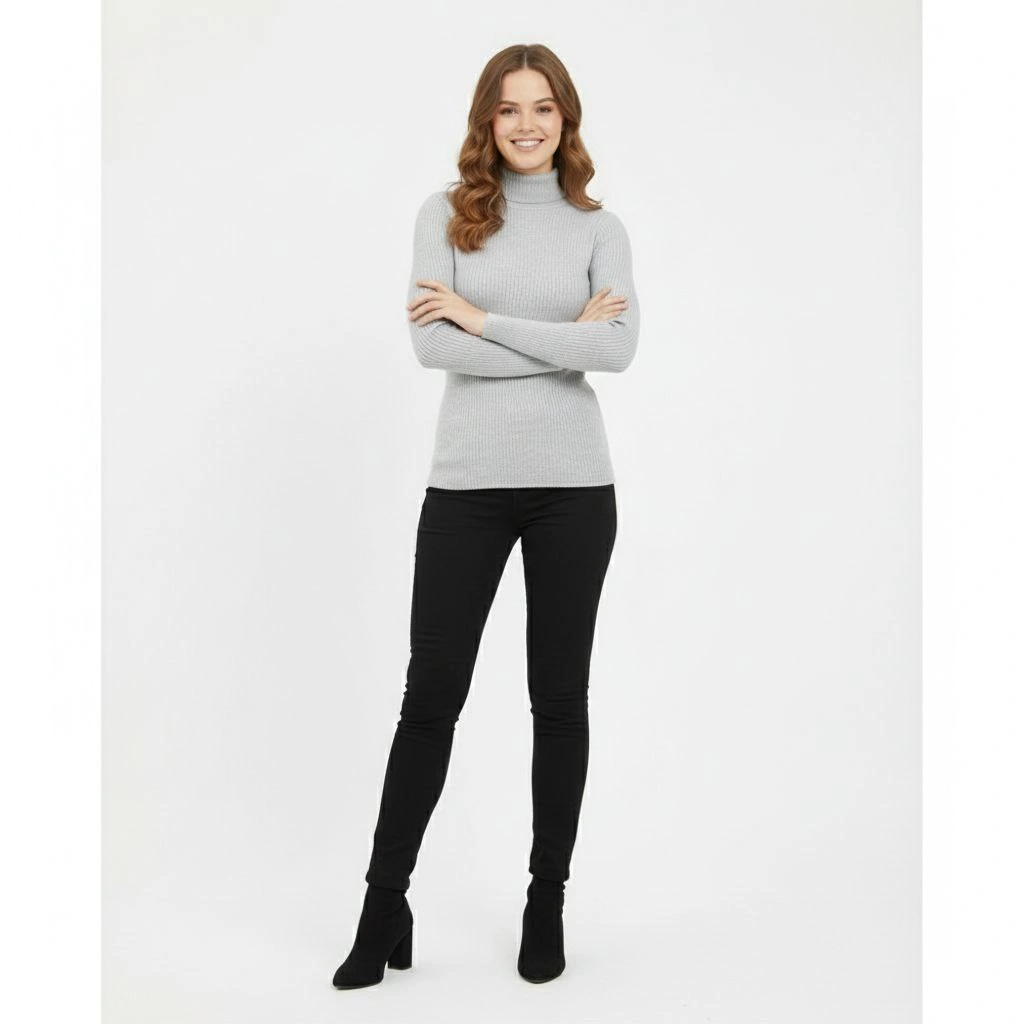 Velmora Yarım Boğaz Triko Kazak at Regular kalıp - Gri
