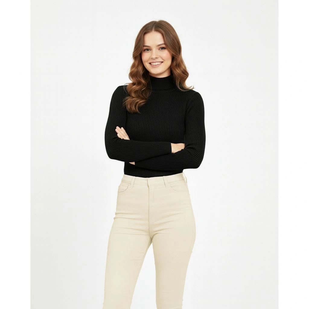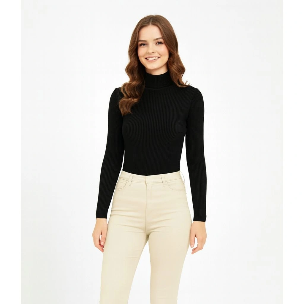 Velmora Bisiklet Yuvarlak Yaka Triko Kazak Pamuklu Kalın Fitilli Dokuma, Regular Fit Uzun Kollu Kışlık Model - Siyah