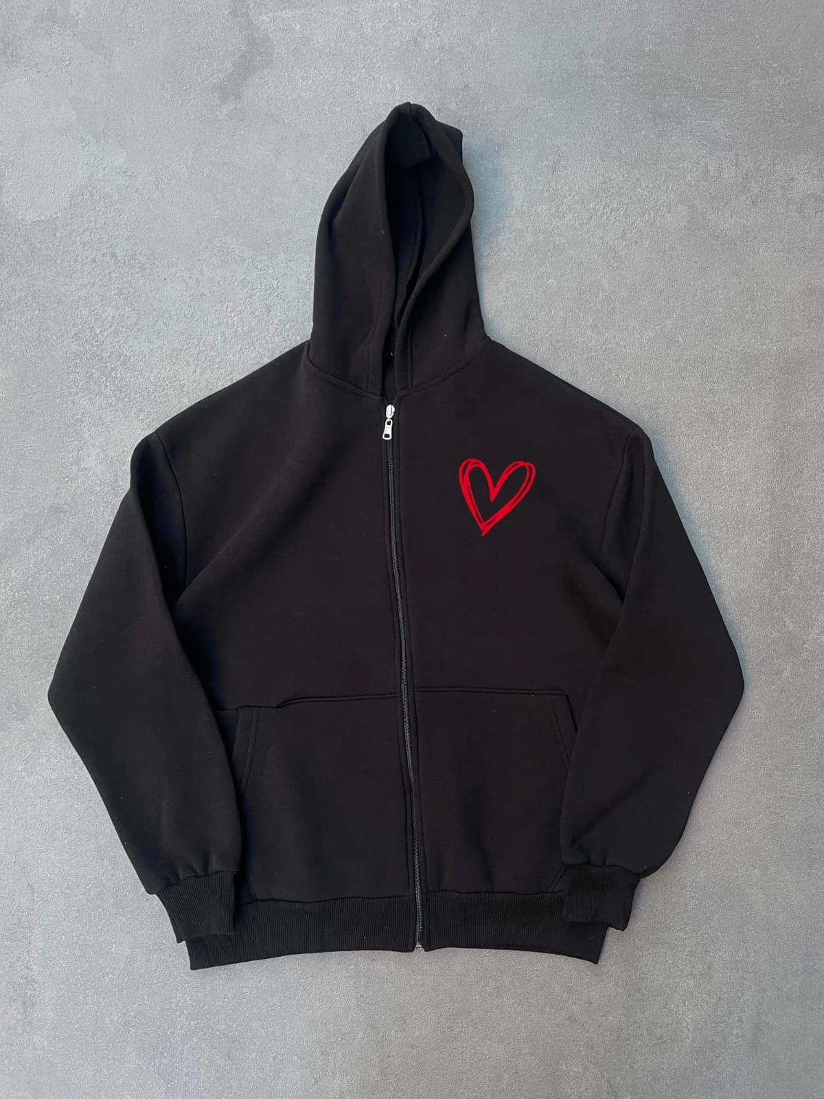 Velmora Oversize Kapüşonlu Sweatshirt Hoodie 3 İplik Şardonlu Pamuklu Kumaş, Önü Baskılı, Fermuarlı Rahat Kalıp, Kışlık ve Sokak Stili Sweat - Siyah