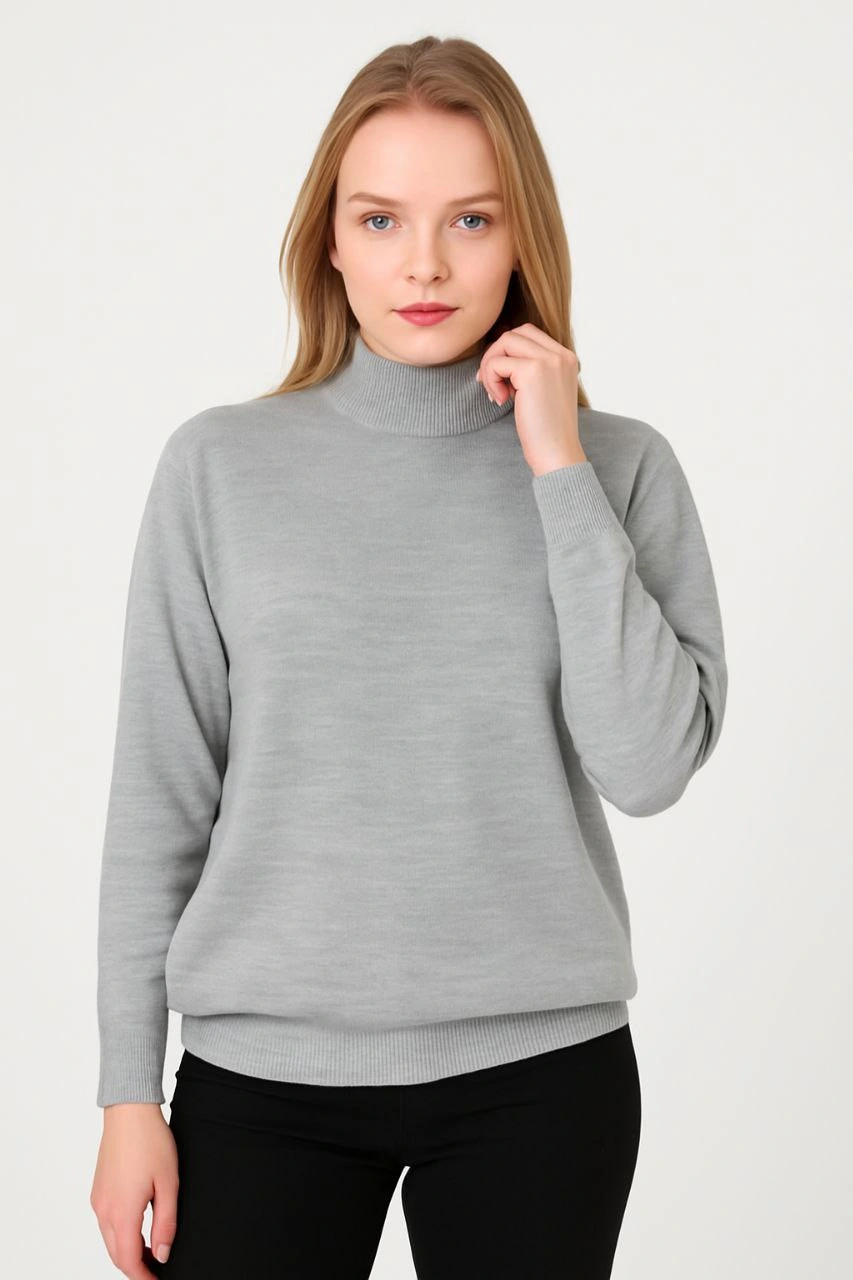 Velmora Yarım Boğaz Triko Kazak at Regular kalıp - Gri