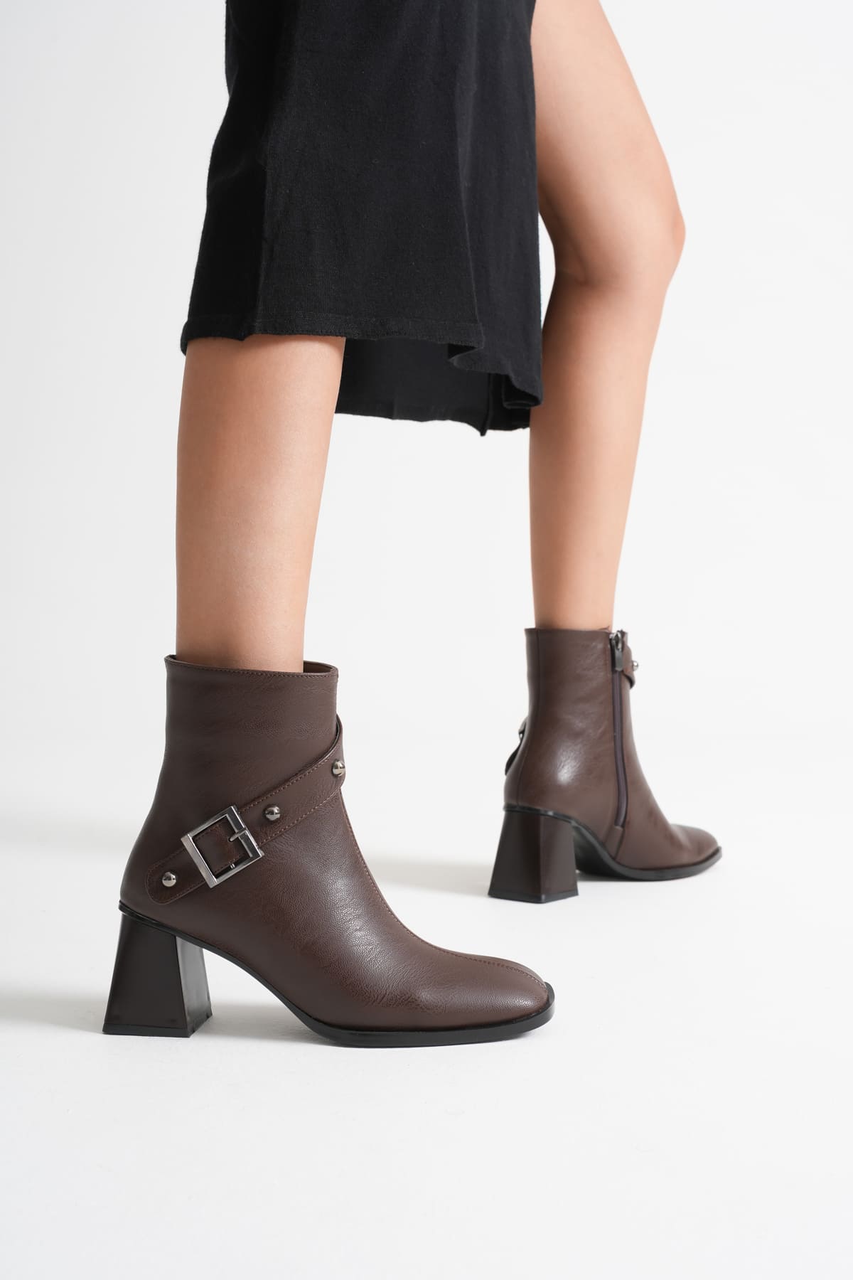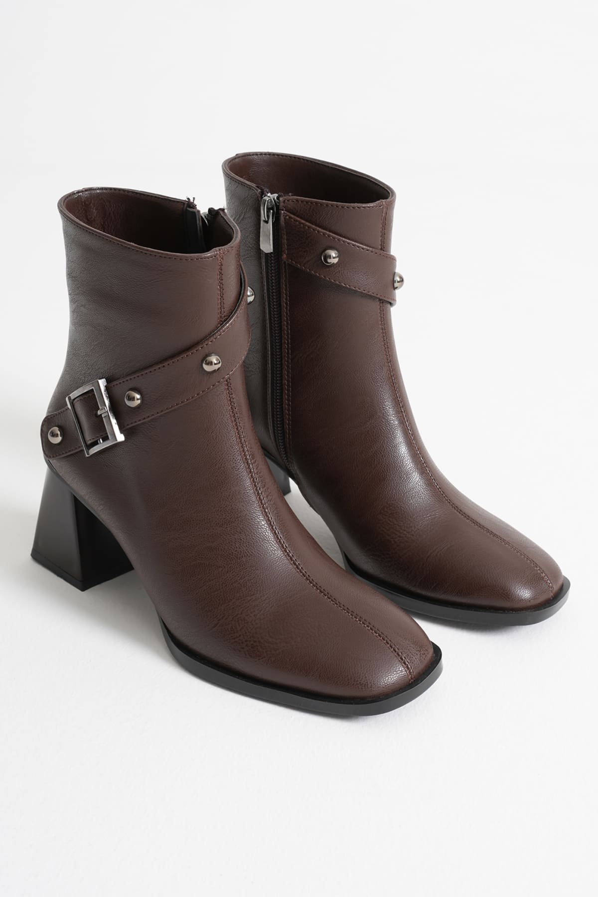 Adnicul Kadın Kışlık Acı Kahve Kalın Topuklu Bot