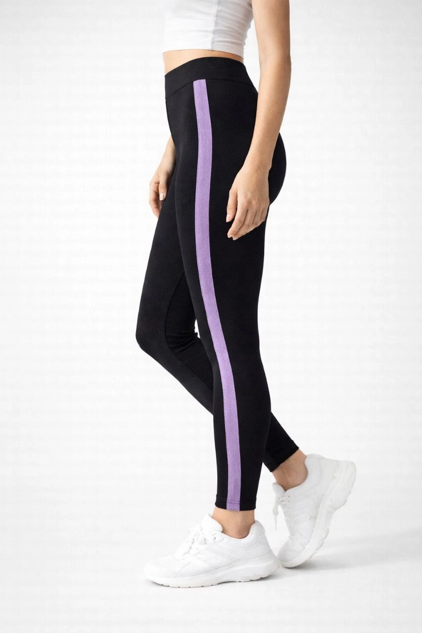 Vix Kadın Siyah Likralı Lila Şeritli Tayt
