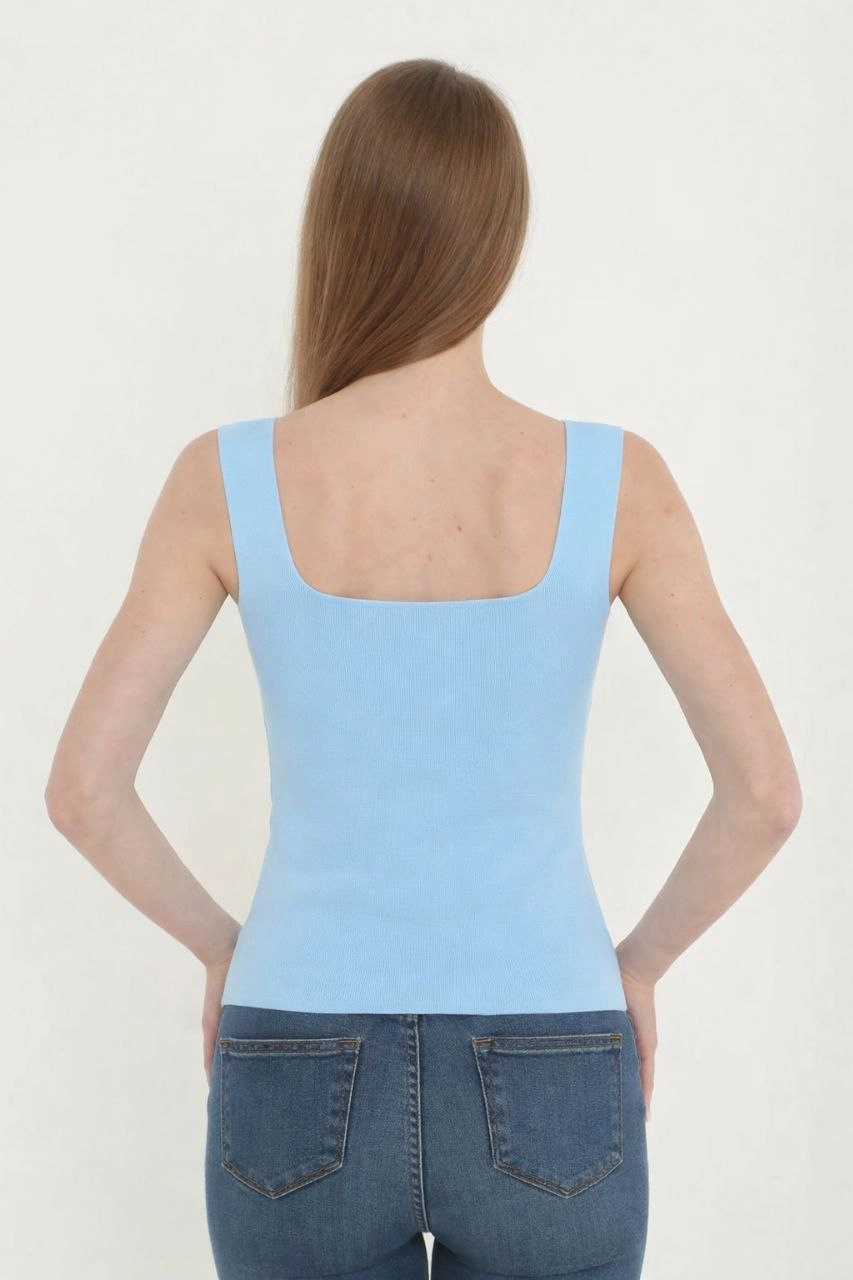 Vubba Mavi Kadın Kare Yaka Detay Crop Bluz