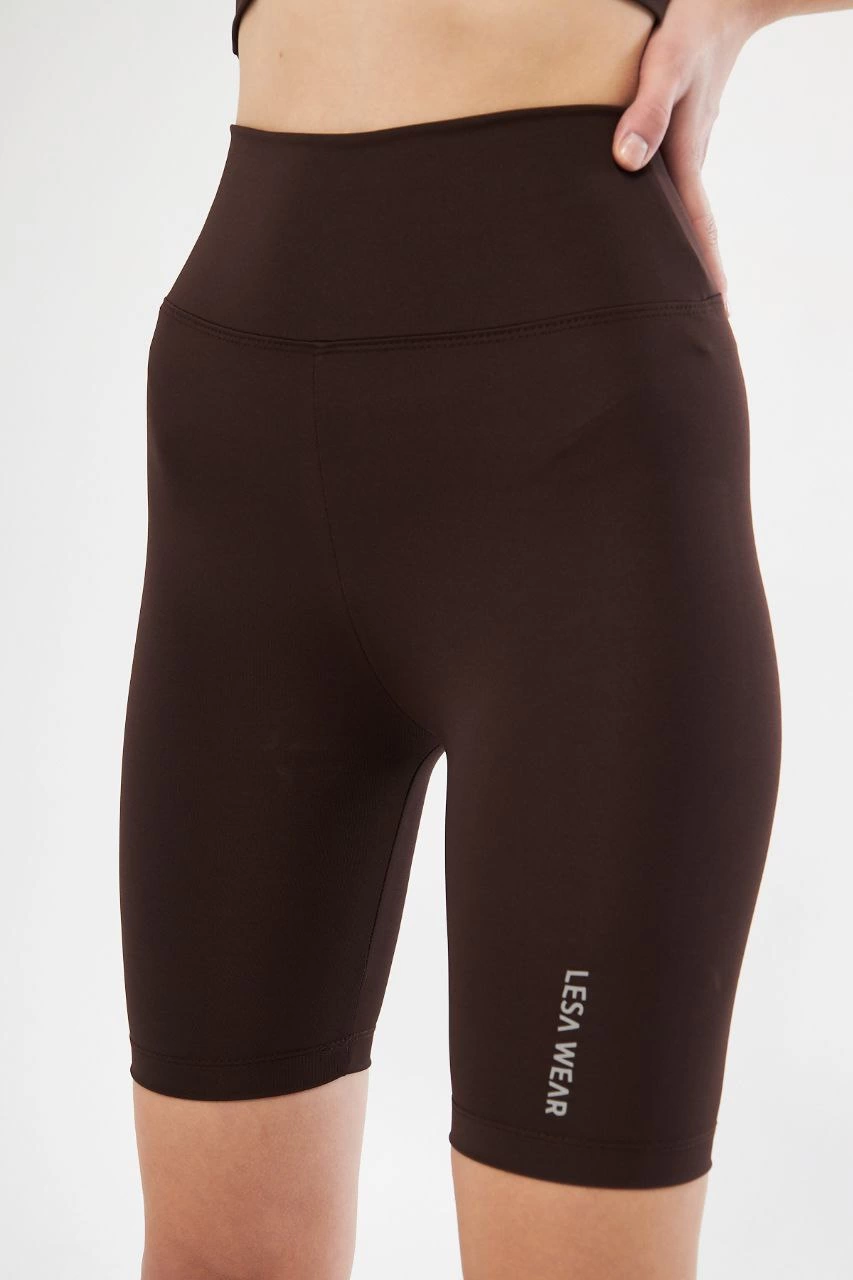 Yüksek Bel Biker Sporcu Şort - Kahve