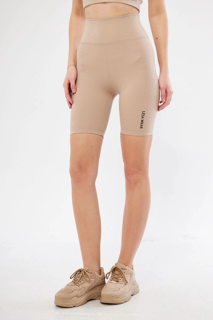 Yüksek Bel Biker Sporcu Şort - Kahve