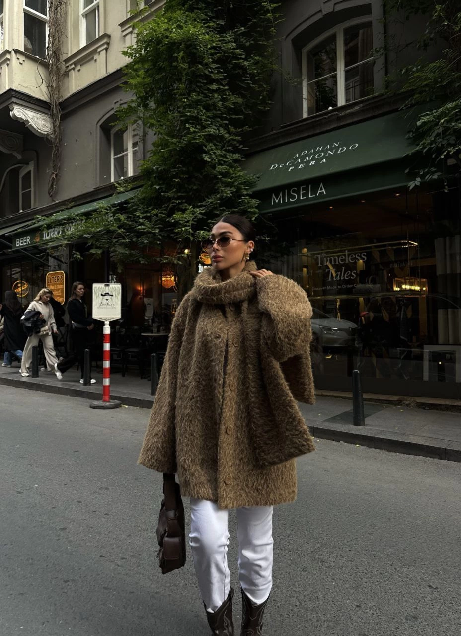Yün Cıkartılabilen Atkılı ,Kaban İkili Takım- Kahve